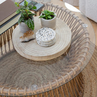 Your table game just got elevated! Natural elements in the home are so on trend. Take this Nova Wood Round for instance. It makes displaying decorative accents like crystals, coasters, and faux plants simply stunning. Each wood round is made from Paulownia wood and fire-burned to accentuate the natural texture and beauty.
