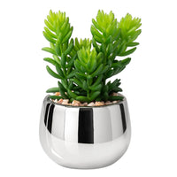 Infuse modern sophistication into any room with this elegantly electroplated ceramic pot encasing a charmingly petite faux succulent. The Jellybean Silver Ball Potted Faux Succulent brings a subtle yet eye-catching style to any office, home desk, living room shelves, or kitchen window, and its luscious design can be complemented with other faux succulents to create a unique indoor garden.
