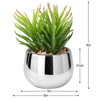 Add a touch of style and refine your space with this exquisite Silver Ball Potted Faux Succulent - Spike. Its electroplated ceramic pot and vivacious succulent represent a vibrant and eye-catching addition to any interior, perfect for creating a picture-perfect indoor garden on your desk, kitchen window, or living room shelves. With its delicate beauty and lush color, this plant will provide a touch of sophistication and effortless elegance to your space.