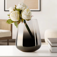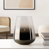 Experience a breathtaking display of light and reflection with this lavish 10-hour Hurricane Vase. Boasting a distinct smoke mirror finish, its cone-shaped silhouette is perfect for showcasing flowers or candles in an elegant and sophisticated manner, or can be left as a stylish stand-alone piece. Capture the timeless beauty of this luxurious glass vase today.