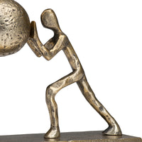 Two Men Pushing a Ball 7.5h" Antique Gold Aluminum Decor Sculpture