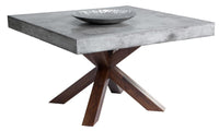 This incredible square dining table features a 10cm concrete edge top for an industrial look. A contrasting thick base made from acacia wood with a light espresso finish provides the perfect balance of materials. Crafted from a natural concrete mix, each piece will look different, with variations of grey hues that will enhance over time.
