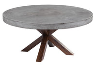 This incredible round dining table features a 10cm concrete edge top for an industrial look. A contrasting thick base made from acacia wood with a light espresso finish provides the perfect balance of materials. Crafted from a natural concrete mix, each piece will look different, with variations of grey hues that will enhance over time.